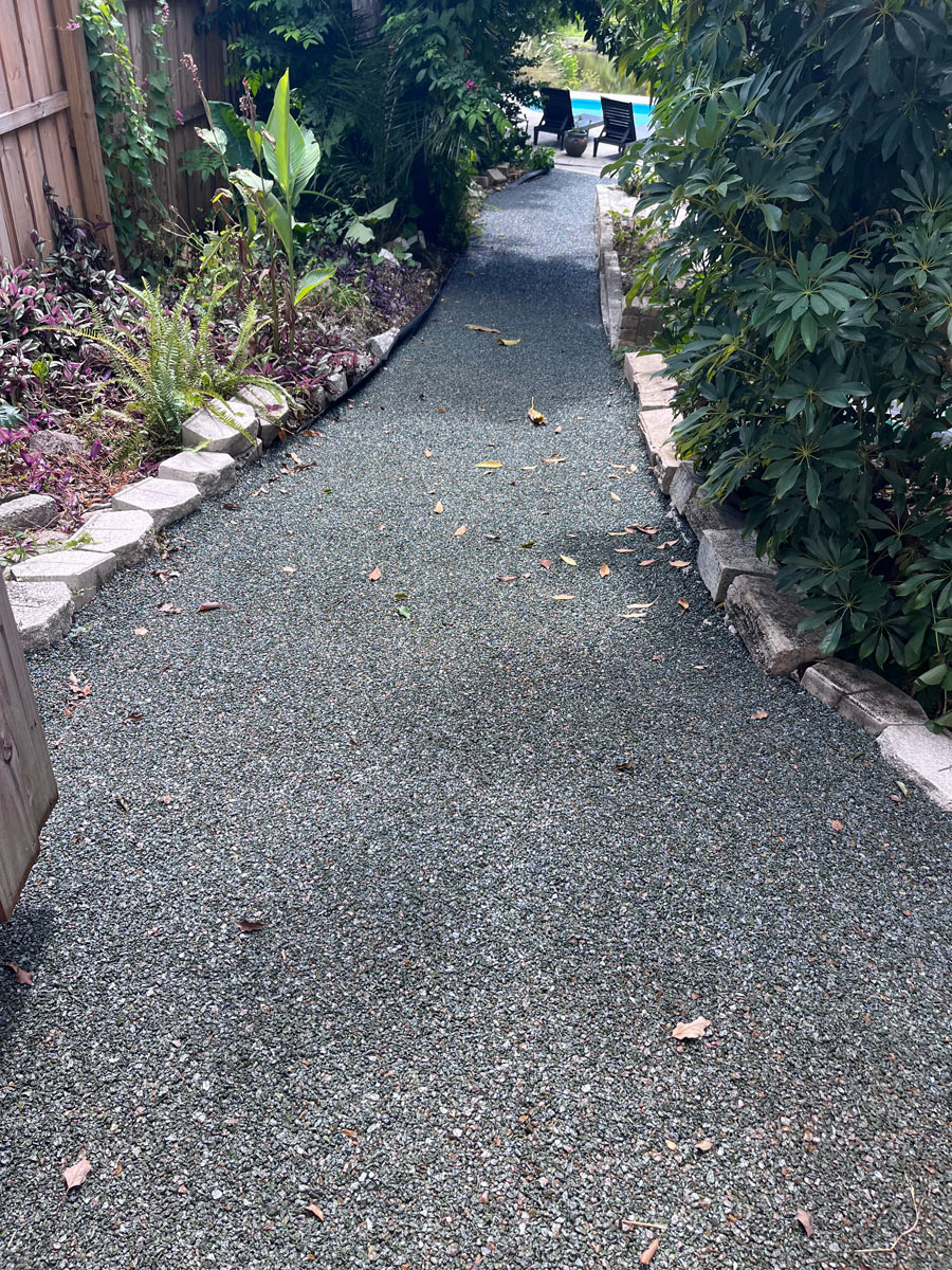 When this community had enough of flooding walks, they chose Laub’s Drainage & Flexi Pave Installers to solve their problem. After removing the existing side walk, we re-graded, install Hydraway Drainage system and Flexi Pave over top. Now they have an extremely pourus and durable surface with a high performance drainage product to remove the water.